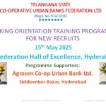 Telangana State Co-op Urban Banks Federation conducted one day training program Banking Orientation for UCB staff on 15th May 2025 in order to create awareness on various Banking Related Acts, basics about Deposits, Advances.