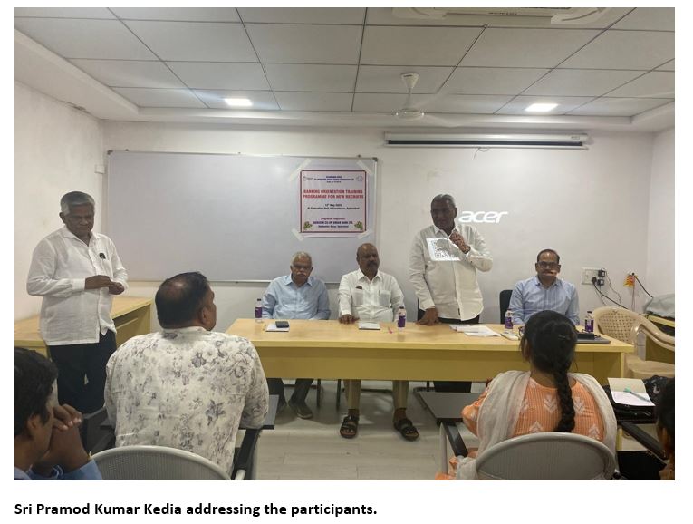 Sri Pramod Kumar Kedia, Vice-President of Telangana Federation praised the federation efforts for organising regular trainings to the UCB staff without charging any participation fee. With an intention to encourage the federation to conduct more and more such trainings, from his Agrasen Coop Urban Bank, provided Rs.1.00 lac from Common Good fund and another Rs.50,000 from Education fund to the federation. Federation overwhelmed for his kind act and planned a series of trainings during this year 2025-26.